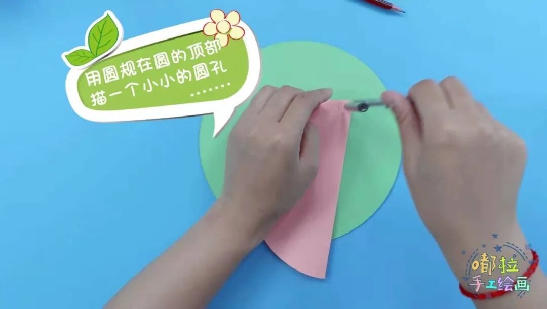 用圆规在小圆的顶部画一个小孔