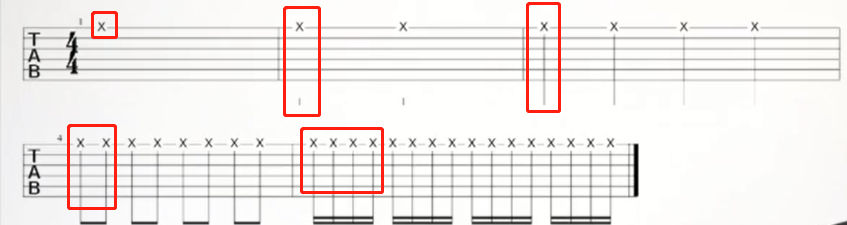 一个X一个竖两个横代表十六分音符,即“四分之一”拍,每四个十六分音符合在一起,即四个四分之一拍构成一拍。